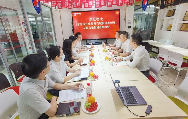 4月2日,東莞市住建局副局長黃卓然、莞城街道住建局副局長胡曉君、市政研科科長黃遠峰等一行蒞臨公司考察指導。集團公司副總麥偉強、副總張志雄、財務總監方曉嵐、營銷部負責人雷挺等陪同考察團一行。